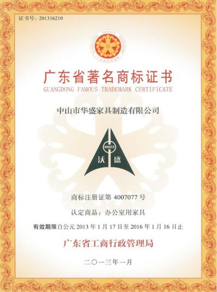 广东省著名商标证书